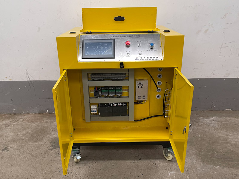 ● 本系統中液壓泵站利用開關閥來控制流量,依靠調節開關閥的開關頻率來改變流量,達到使油泵的輸出流量連續可調的目的,配以適當的電控裝置,組成壓力和位移閉環控制,就可以精確控制各臺液壓千斤頂在升降時同步,稱重過程中的負載均衡。